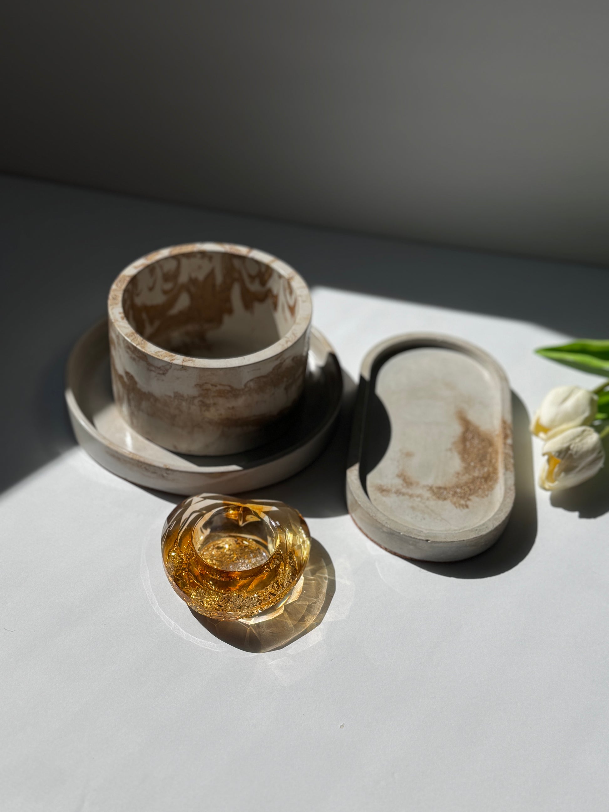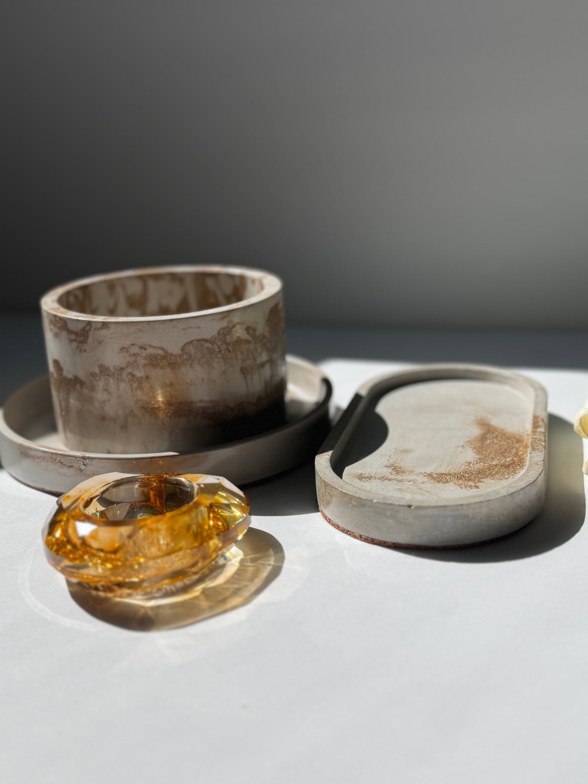 Gorgeous decorative set to make the perfect coffee table tray, vanity tray, candle tray, jewelry tray, and much more.