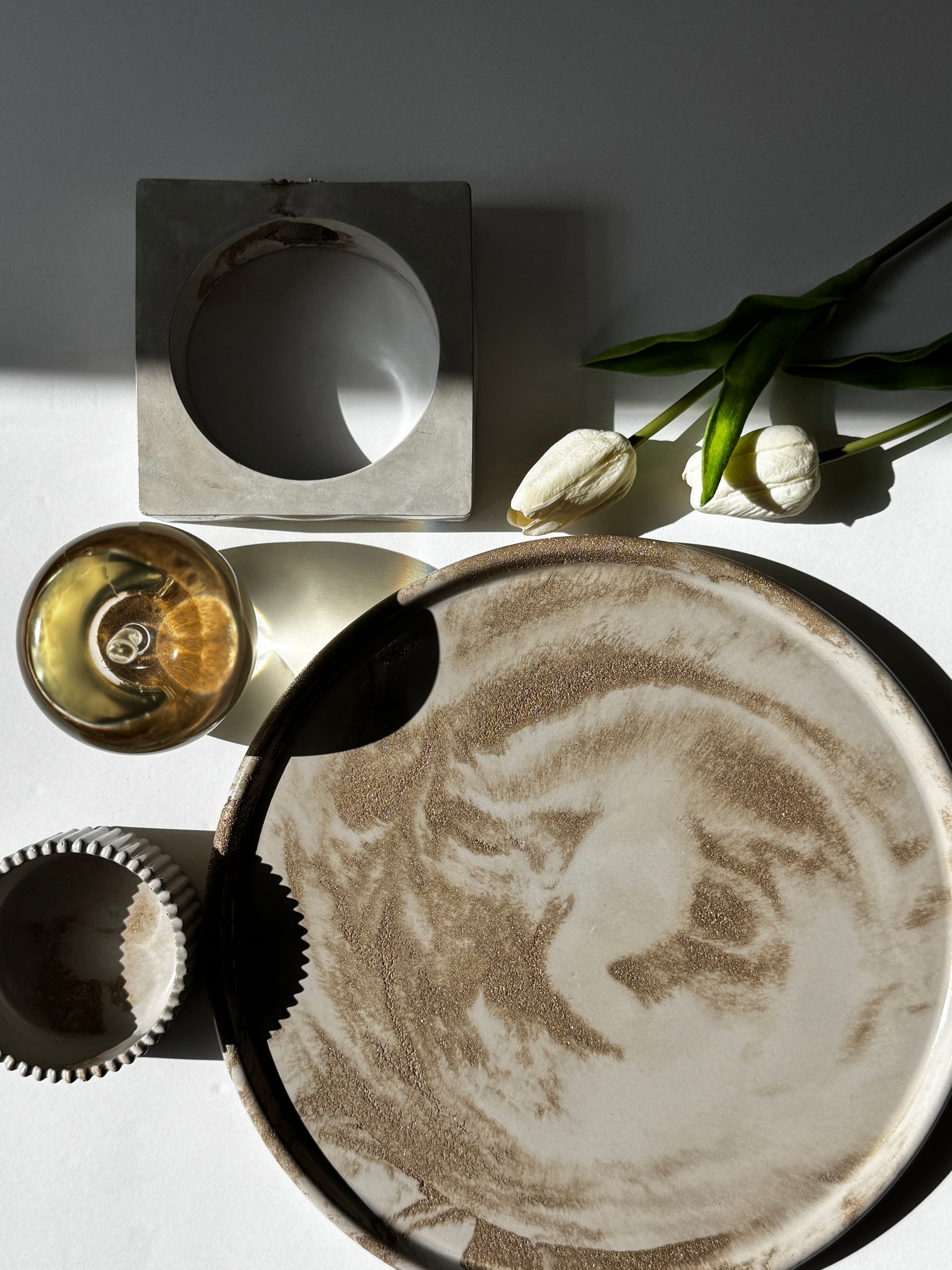 Elevate your home decoration with our concrete sets. Functional and delicate 4 pieces to add a special accent. Use our trays and jar for jewelry, candle or kitchen. For a minimal style just place it on your coffee table for an elegant and simple touch.