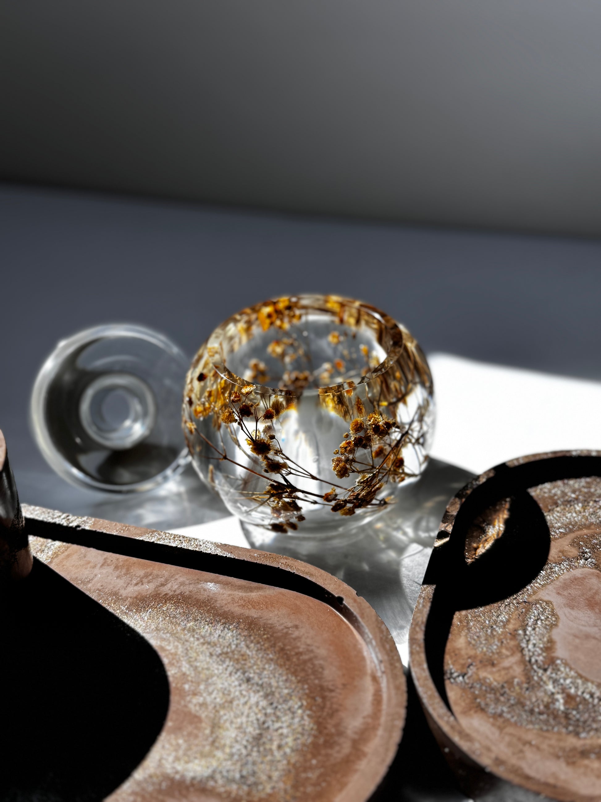 -1 Resin Jar with dried eucalyptus flowers 2.6" 5.2"