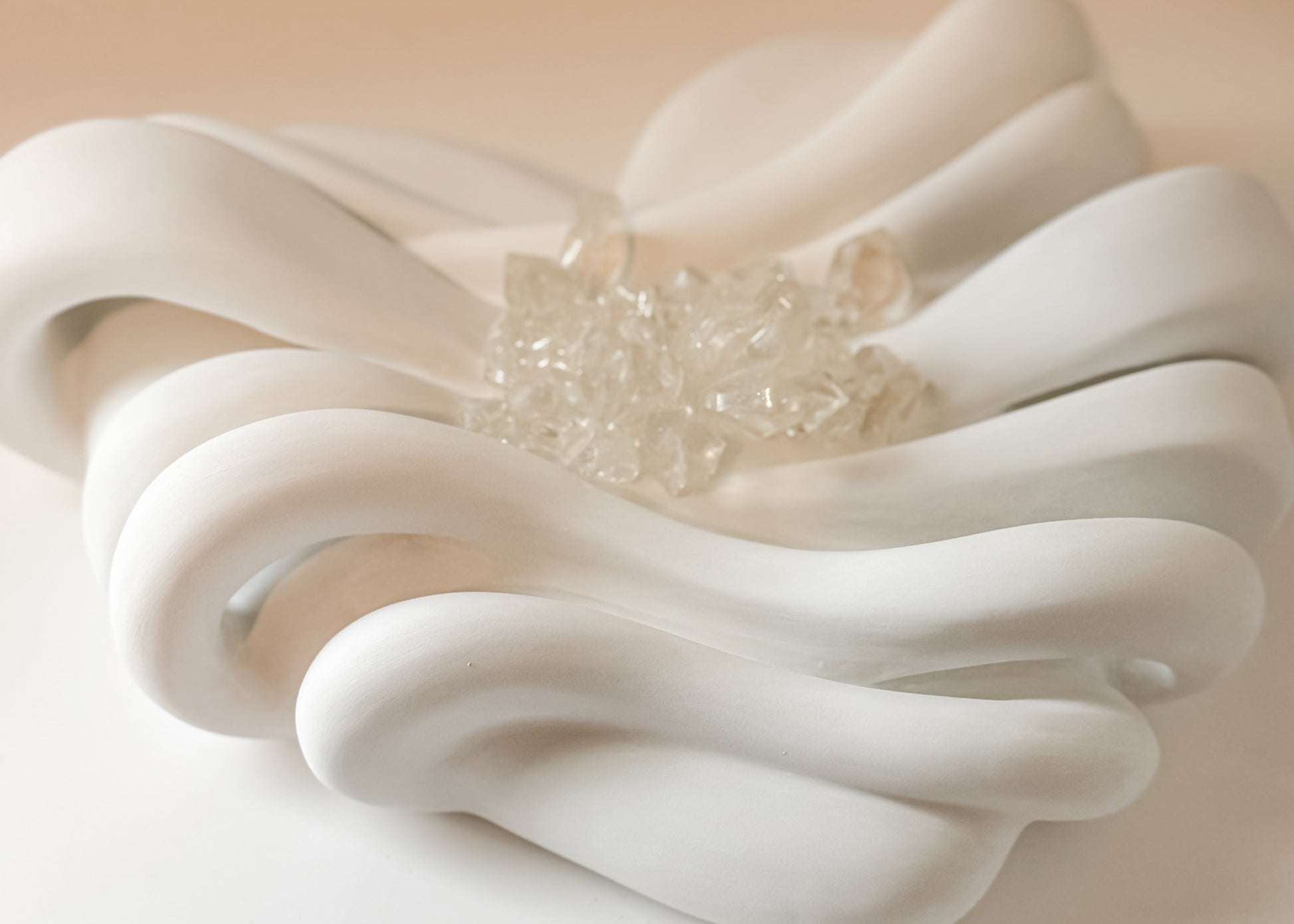 Swave 03 continues the exploration of fluid movement and harmonious curves. Hand-sculpted from repurposed materials and drywall mud. It embodies transformation from the ordinary to the essential.